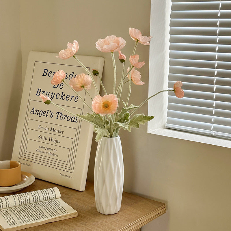 Crafted from high-quality ceramic, the vase features a smooth finish and refined structure that reflects modern simplicity. Available in multiple geometric and origami-inspired designs—such as flat mouth diamond patterns, wave mouth ripples, and oblique mouth styles—this tulip vase adds a unique touch to any interior. Its crisp white finish creates a versatile canvas for displaying fresh flowers, artificial arrangements, or seasonal greenery.